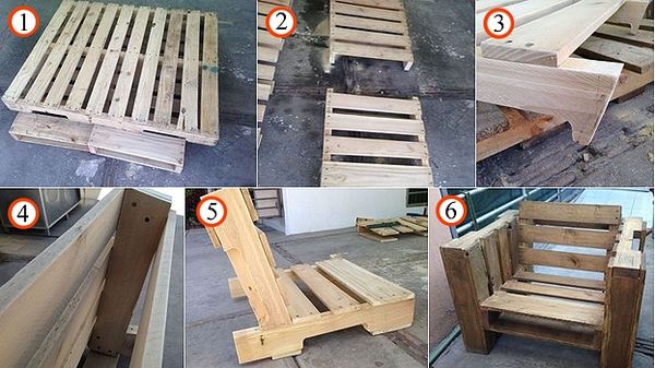 Le moyen le plus simple est de faire tomber une chaise de palettes. Pour la version simple, vous aurez besoin de 2 palettes de dimensions standards. Dans ce cas, la distance entre les planches supérieures ne doit pas être inférieure à 45 mm. L'essentiel est de bien fixer l'assise et le dossier, de poncer le bois et de faire une inclinaison. Parmi les outils, vous aurez besoin de marteaux, de boulons, d'un apprêt et de clous. Quant aux principales matières premières, vous pouvez les commander sur Internet à un prix de 120 à 190 roubles la palette ou parcourir les annonces de la rubrique "Je le donne gratuitement".