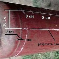 Nous trouvons des coutures circulaires, à 3 cm d'elles, nous le faisons des deux côtés. Ensuite, les marques sont appliquées tous les 8 cm. Vous devriez obtenir 6 points, dans lesquels nous faisons des trous d'un diamètre de 1 cm. Maintenant, le marquage du couvercle. Considérez la première ligne marquée et la dernière. Appliquer une bande entre eux à 3 cm de la couture circulaire. Le couvercle est terminé.