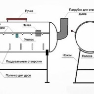 Le fumoir se distingue du barbecue habituel par la présence d'un foyer. Par conséquent, l'étanchéité de la structure est une priorité. Pour créer un tel poêle, vous devez retirer la moitié du fond. Le foyer est formé de tôles de fer. Auparavant, un cylindre différent était utilisé pour cela, mais la conception s'est avérée trop globale. Les pièces sont soudées, une cheminée est équipée. Il suffit de quelques étapes pour transformer un barbecue traditionnel en fumoir. L'essentiel est de s'assurer que le poêle est hermétique et que la cheminée est fiable.