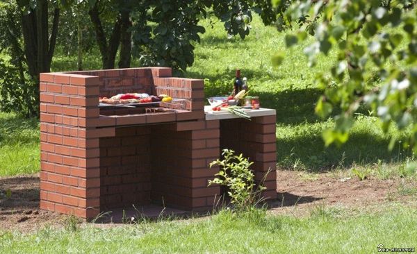 Si la matière première principale est la brique, il est impératif de faire un dessin en coupe du barbecue. Ensuite, posez les fondations, construisez une rangée de sous-sol, une cheminée et un auvent. Le travail prendra 5 à 7 jours, mais c'est le meilleur qui puisse être offert aux connaisseurs de produits de haute qualité.