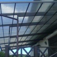 En termes de résistance, le matériau est supérieur non seulement au polyester, mais également à l'acrylique. La bonne flexibilité des feuilles contribue à la création de structures cintrées uniques, et en raison de la faible conductivité thermique, on peut parler de la plus grande résistance des structures aux vents violents. Le polycarbonate alvéolaire, qui réfléchit jusqu'à 95% de la lumière naturelle, fait d'excellents stores droits et obliques.