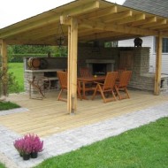 Les structures suspendues sont autonomes ou adjacentes à une maison ou à une autre structure. Debout séparément, vous trouverez des tentes ouvertes, des zones de grillades et des pergolas. Les kiosques de chalet d'été peuvent être une continuation de la maison ou d'autres bâtiments. Les abris de jardin jouent souvent le rôle de cuisine d'été, et parfois une piscine est placée sur leur territoire, surtout si la structure est située à proximité d'un bain public.