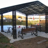 Le bâtiment en polycarbonate est très facile à construire. Il peut être facilement construit sur n'importe quel type de fondation et de cadre. De tels gazebos sont très économiques, ils peuvent être déplacés et positionnés même dans une petite zone. Un avantage important des tonnelles en polycarbonate est leur longue durée de vie. Grâce à la peinture en poudre spéciale, les gazebos ne perdent pas leur éclat. Ces beaux bâtiments sont impressionnants même sans décorations supplémentaires.