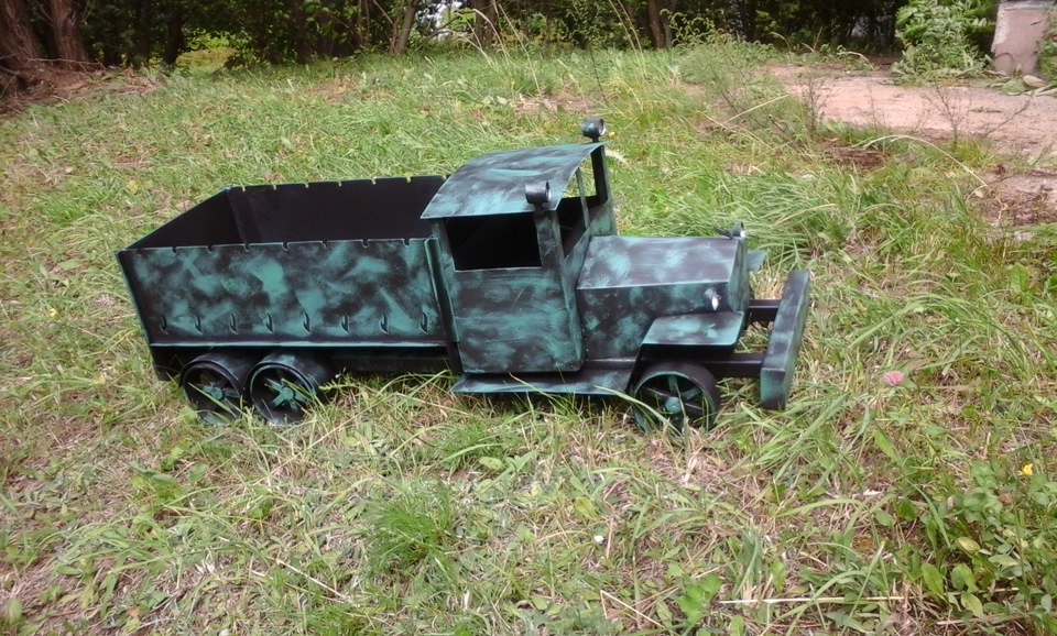 Pour fabriquer un brasero en forme de train, il faut travailler un peu. Dans une ancienne bonbonne de gaz, une partie de la paroi est enlevée, le corps est traité à l'acétone et recouvert de colorants. La cabine du conducteur, la cheminée et les supports de roues sont soudés à partir de tuyaux métalliques de différents diamètres. Les roues elles-mêmes peuvent être fabriquées à partir d'arceaux métalliques provenant de barils ou de jantes de voiture.