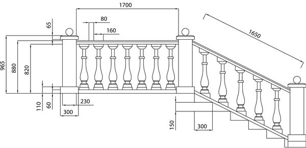 Lors de la fabrication de sections, les balustres peuvent être fabriqués par vous-même. Cela nécessitera une petite machine à bois. L'absence de machine nécessitera l'utilisation d'une barre carrée ou rectangulaire classique. En option, il est possible d'acheter des balustres prêts à l'emploi, dont la taille et la forme sont variées. Ils sont largement disponibles dans le commerce de détail.