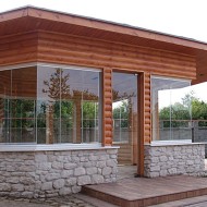 L'installation des fenêtres doit avoir lieu au stade de l'érection du cadre, sinon les cadres en bois pourraient ne pas s'intégrer dans la structure déjà existante. Pour fabriquer le cadre, vous aurez besoin d'une poutre en bois d'une section transversale de 4,5 cm.Selon les mesures prises précédemment, le matériau est coupé. Dans le processus, vous aurez besoin d'une scie circulaire ou d'un rabot électrique. Un rectangle est formé à partir des flans, dans lesquels du verre est inséré. Le verre inséré dans le cadre est fixé sur les côtés avec des lattes de bois étroites. Un gazebo vitré de cette manière protège des rafales de vent, de la pluie et de la neige, mais ne retient pas bien la chaleur.