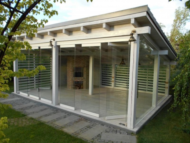 La popularité des cadres en bois commence à croître rapidement, de plus en plus de résidents d'été prêtent attention aux structures en bois belles et durables. Dans ce cas, une distinction est faite entre vitrages froids et vitrages chauds. L'option froid signifie l'installation de blocs de fenêtre avec un seul verre qui protège la pièce de la poussière, des débris et de l'humidité. Le type de construction chaleureux, qui se compose d'une, deux ou même trois chambres, vous permet d'utiliser le gazebo de jardin toute l'année.