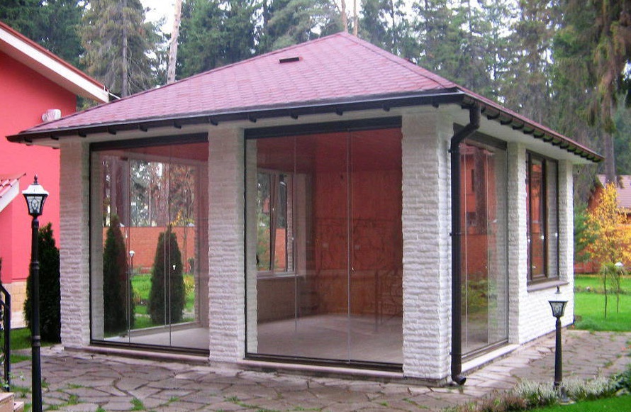 Le vitrage des tonnelles est une mesure nécessaire pour protéger le bâtiment du vent, du froid, de la pluie, de la grêle, de la neige et d'autres phénomènes atmosphériques. Dans la plupart des cas, ces bâtiments sont conçus pour une utilisation toute l'année. Par conséquent, ils sont souvent équipés d'appareils de chauffage, d'électricité et d'eau courante. Les fenêtres vitrées vous permettent de maintenir la température et l'humidité dans la pièce. Selon les représentants des entreprises de construction, la principale perte de chaleur en hiver vient des fenêtres.