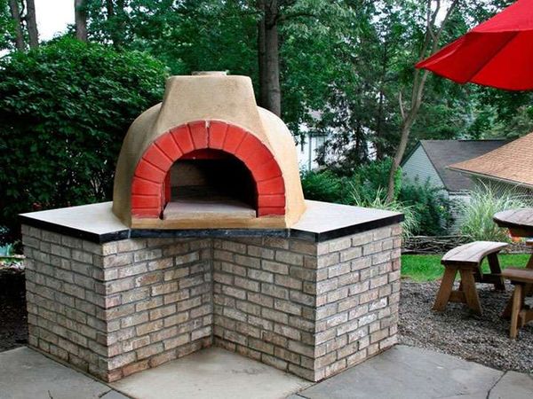La table de cuisson inférieure peut être carrelée avec un mur de briques. Il doit recouvrir complètement la paroi arrière du foyer et les deux côtés. Si vous le souhaitez, la partie avant du four est également facilement formée, il ne reste que des ouvertures pour les portes. La ligne supérieure de la maçonnerie doit coïncider avec le niveau du compartiment de cuisson, le fond est légèrement plus large que le haut.