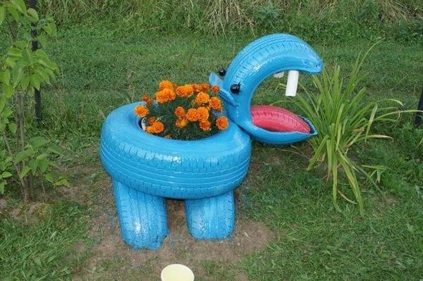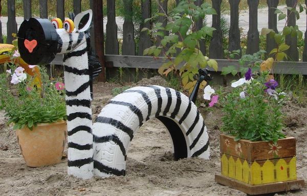 Il est possible d'assembler des petits pneus avec de la colle chaude comme un bonhomme de neige. Des morceaux de caoutchouc peuvent être utilisés pour faire des mains et des griffes. Et si vous utilisez également des peintures, vous obtiendrez certainement des lièvres, des grenouilles et des ours amusants. À propos, leurs pattes arrondies peuvent être utilisées comme parterres de fleurs.