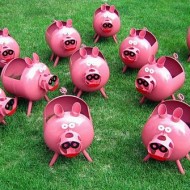 Pour une figurine de lapin, il vous faut 2 bouteilles. Un récipient de cinq litres est pour le torse et un autre de deux litres pour les oreilles. Pour éviter que l'embarcation ne soit emportée par le vent, le conteneur doit être rempli de sable ou d'eau. Tout d'abord, les oreilles sont découpées sur la plus petite bouteille, laissant environ 5 cm de plastique pour une fixation ultérieure sur la tête. Les yeux, la bouche et les dents d'un lièvre sont dessinés sur une grosse aubergine. À la toute fin, les parties séchées sont connectées et la figurine finie est installée dans le jardin. De même, vous pouvez faire un cochon, un raton laveur et un chat.