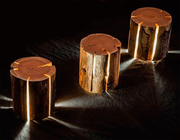 Avant de peindre, la surface de chaque souche est nettoyée des bavures et soigneusement poncée. Ensuite, la peinture est appliquée et laissée à sécher. Vous pouvez appliquer de la peinture sur toute la surface du siège de la bûche, puis il brille entièrement dans le noir, illuminant toute la zone.
