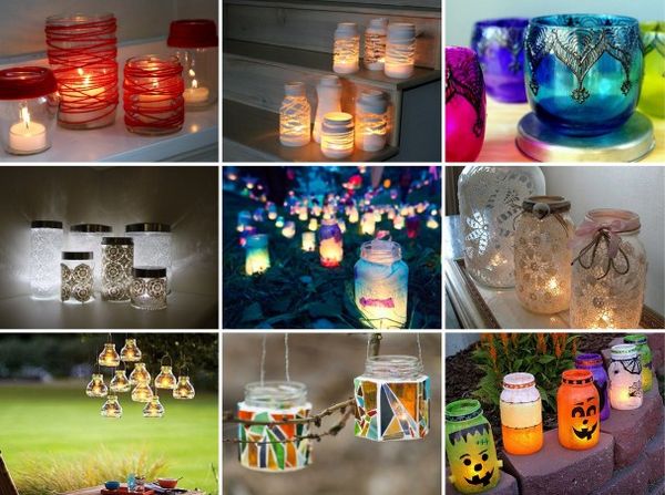 Les pots doivent être fermés avec des couvercles en métal, car les bougies en cire brûleront à l'intérieur. Des cosses sont attachées aux couvercles, à travers lesquels des chaînes sont enfilées, vous permettant d'accrocher des lampes artificielles sur des arbres, une clôture ou un porche d'une maison.