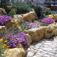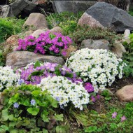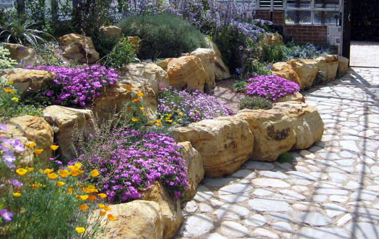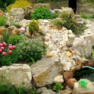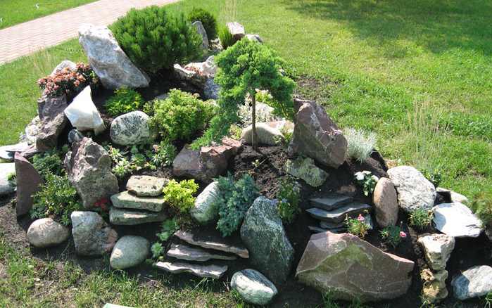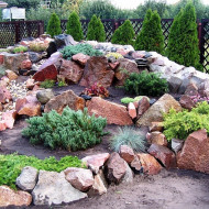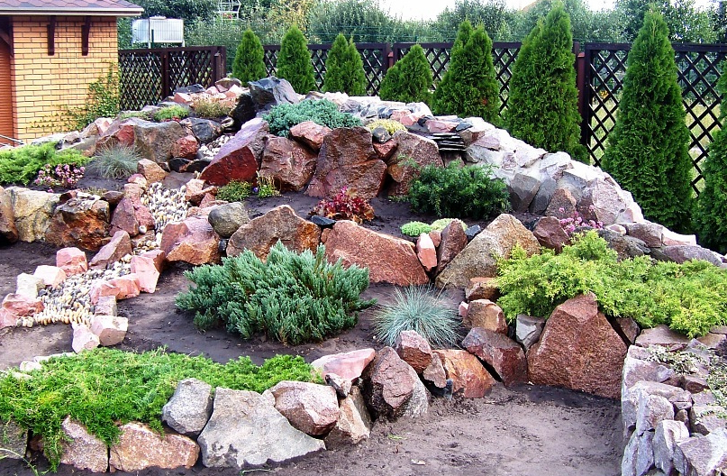 Jardin de roches – c'est une zone remplie de pierres à un ou plusieurs niveaux, avec des plantes poussant entre les deux. Un tel toboggan peut être aussi impressionnant (1,5–2 m de haut) et miniature (total 40–50cm).