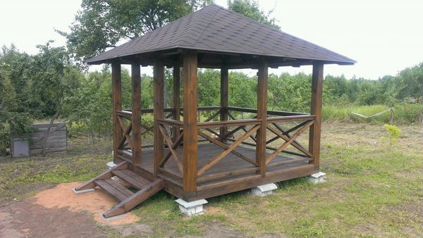 Un gazebo rectangulaire est le plus pratique pour effectuer des travaux. Cela est dû à la simplicité de joindre les poutres du cadre à angle droit. De plus, la fabrication d'un toit rectangulaire est beaucoup plus facile qu'un toit polygonal ou rond.