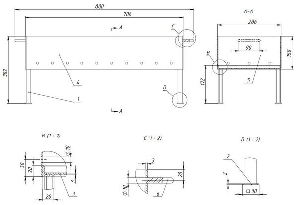 Quelle devrait être la hauteur de toute la structure, y compris les jambes? Dans la plupart des cas, 1 mètre est considéré comme la norme - il sera pratique de cuisiner à ce niveau, vous n'aurez pas besoin de vous accroupir ou de vous pencher sur le brasier lorsque vous tournez les brochettes, et vos mains ne vous feront pas mal non plus. En conséquence, la hauteur des jambes est de 80 à 85 cm.