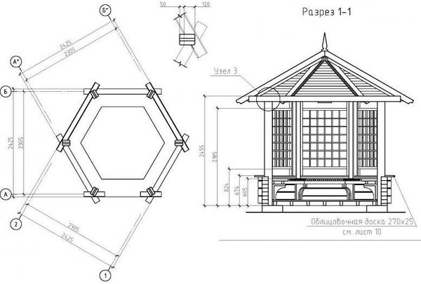Après avoir déterminé toutes les données initiales, il est important de réaliser un projet dont le composant principal sera des dessins ou des croquis du gazebo et le calcul de ses éléments individuels. Voyons maintenant étape par étape comment construire vous-même un tel belvédère.