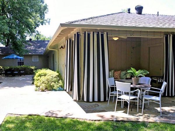 Dans les annexes totalement ouvertes, il est plus logique d'utiliser des rideaux de bâches réfractaires. Ils résistent mieux aux changements de température, retiennent la chaleur et ne laissent pas passer une goutte d'eau pendant au moins 3 saisons. Leur haute résistance à la combustion leur permet d'être utilisés dans les gazebos avec barbecues.