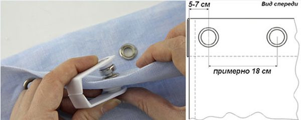 Si vous avez des fenêtres aux dimensions non standard, créez un motif en biseau. Même si le tissu manque un peu, la longueur du produit peut être augmentée visuellement en utilisant des anneaux en bois. Pour les rideaux auto-cousus en film ignifuge, en plus du matériau principal, vous aurez besoin de ciseaux, de ficelle et d'œillets.
