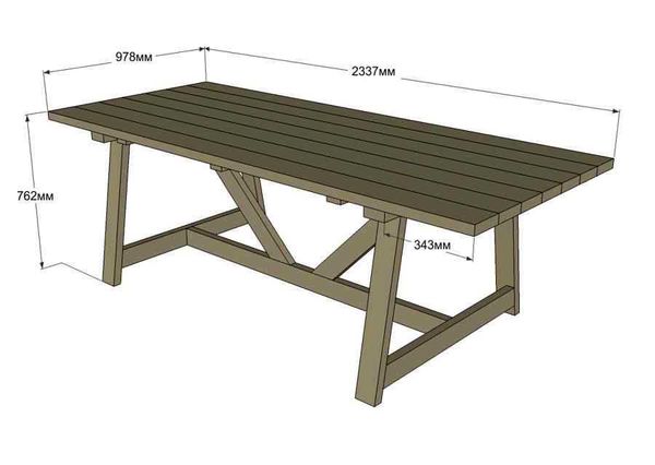 Quelques mots sur le choix du matériel. Étant donné que la table est destinée à un chalet d'été, il est conseillé de la fabriquer à partir de types de bois capables de résister au vent et à une humidité élevée.Il est préférable de choisir du bois naturel, car l'aggloméré n'est pas particulièrement durable: