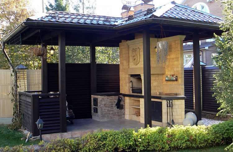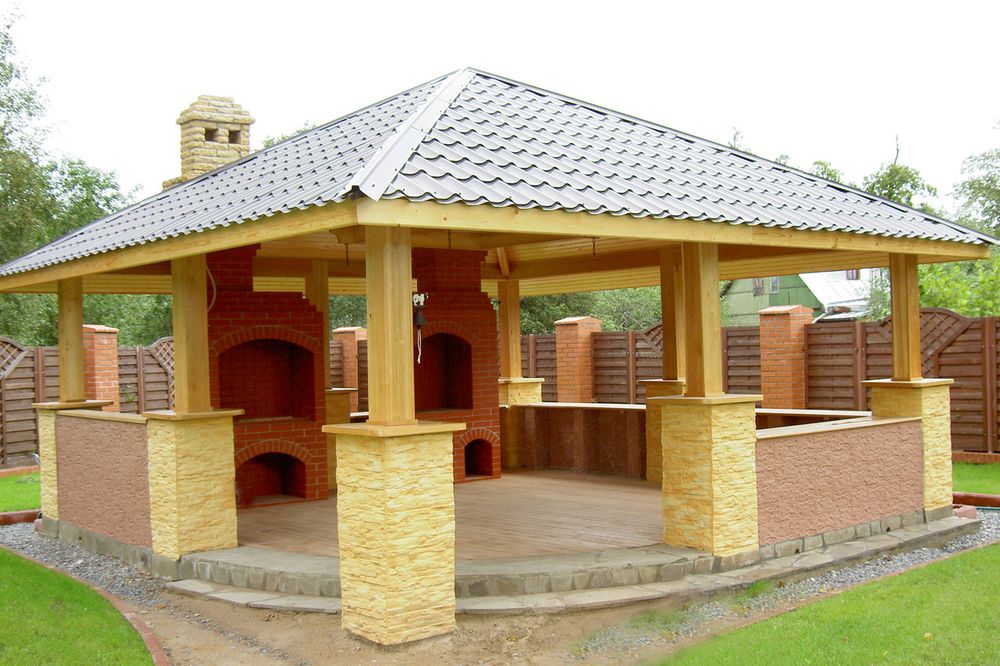 Que peut être un gazebo sans barbecue, demandez-vous ? Il est recommandé de compléter le gazebo à la campagne avec une cheminée, un four extérieur fixe, un barbecue ou un barbecue. Dans ce cas, la conception du barbecue peut être à la fois fixe et portable.