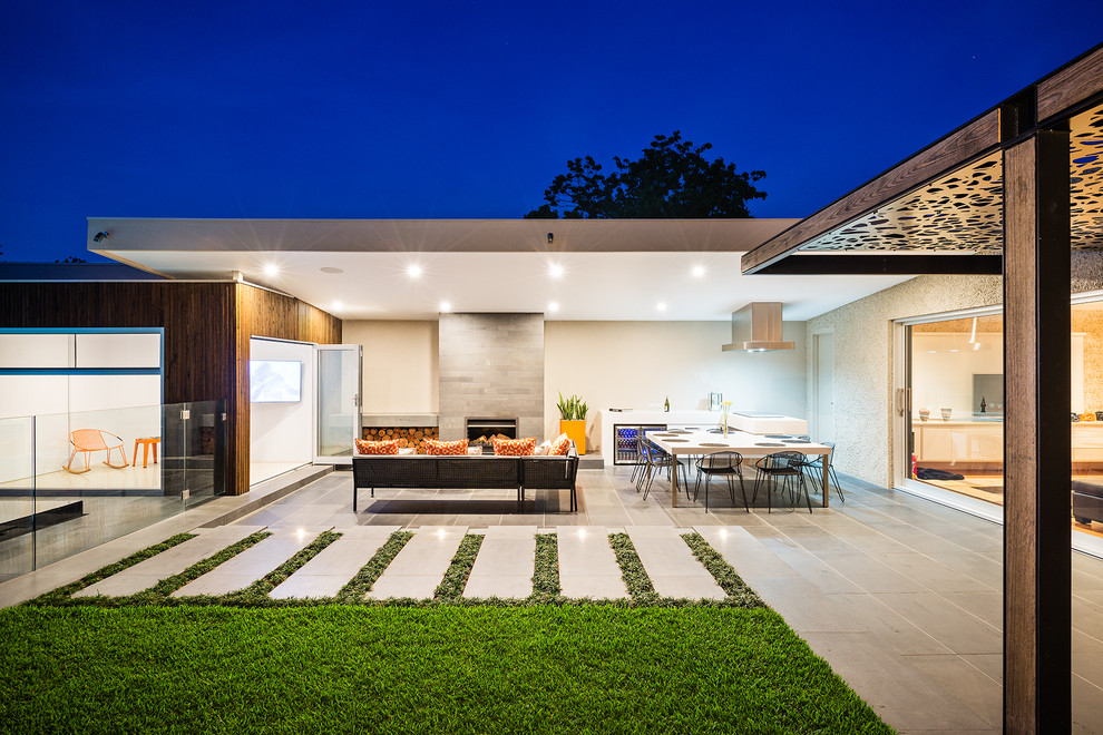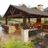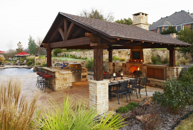 - véranda de type ouvert avec barbecue dans un style classique;