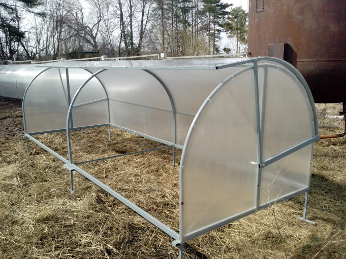 - dans une telle serre, un piston peut être installé, qui lui-même ouvrira et fermera les volets lorsqu'une ventilation ou un chauffage est requis - cette fonction est devenue possible grâce à des matériaux légers (cadre en plastique et revêtement en polycarbonate).