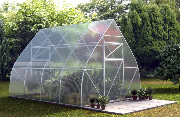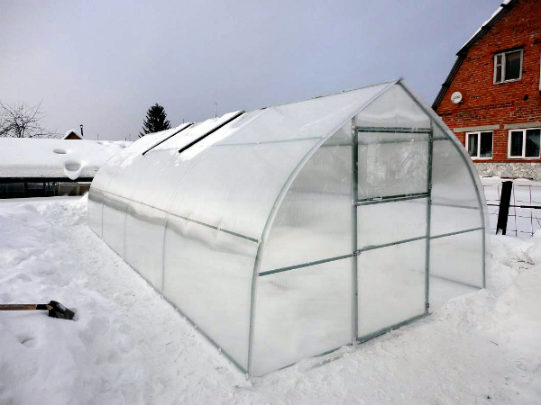 Chaque jardinier peut choisir la taille appropriée de la serre - de 4 à 12 m.La hauteur de la structure reste inchangée - 2 m 40 cm et la largeur - 3 m.