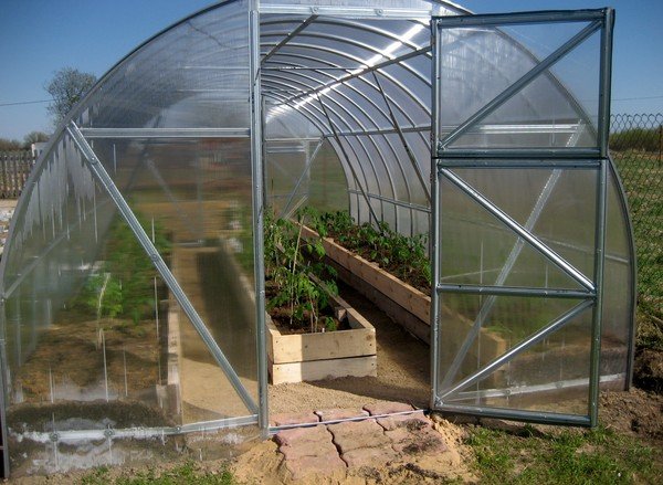 Et en raison d'avantages tels que le revêtement en usine du cadre avec un polymère résistant au gel, la possibilité de corrosion sur le cadre métallique est considérablement réduite. Cela vous permet d'utiliser la serre non seulement au printemps, en automne, mais également en cas de fortes gelées. Étant donné que le taux d'humidité élevé, le vent fort et le gel ne sont pas du tout terribles pour une telle serre.