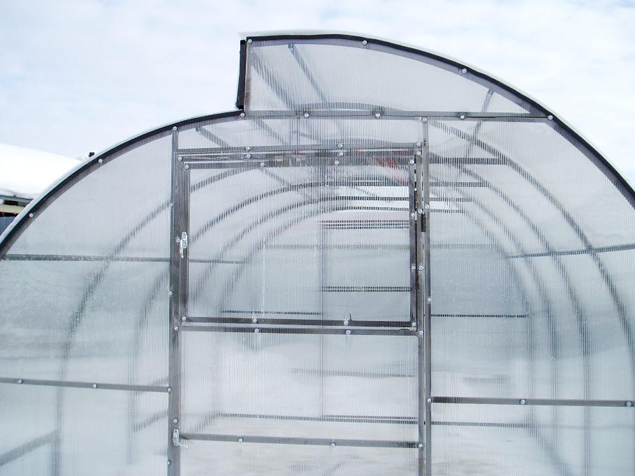 La traverse (fenêtre) est en polyéthylène, fixée sur des lattes de bois, le degré de son ouverture peut être réglé indépendamment. De plus, il s'ouvre sur l'intérieur du bâtiment, ce qui régule l'apport d'air frais.