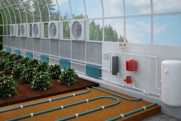 Le chauffage de l'eau de la serre en hiver repose sur un système de canalisation installé sous la couche de sol et une chaudière de chauffage fonctionnant sur l'un des types de combustible : combustible solide, combustible liquide, électrique ou gaz. Lequel de ces types à installer pour chauffer les serres en hiver dépend parfois de la disponibilité d'un combustible particulier dans la région.