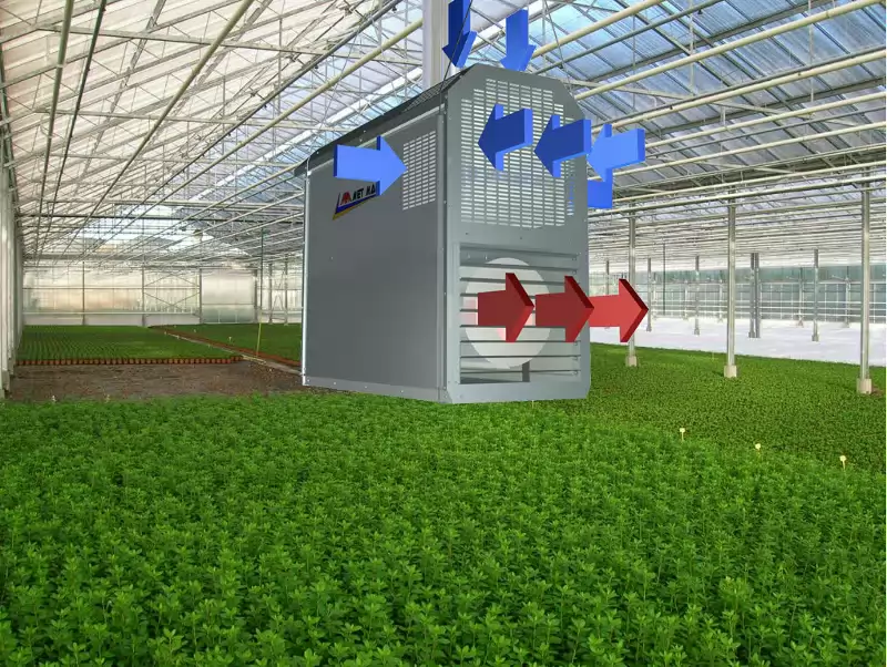 En hiver, vous pouvez utiliser le chauffage à air en déplaçant des flux d'air chaud autour de la serre. Elle est réalisée au moyen de radiateurs électriques ou à gaz. Les pistolets thermiques électriques sont des ventilateurs portables assez puissants. Dans les appareils de chauffage au gaz, le chauffage est effectué au moyen de coussins chauffants dispersés sur la surface de la serre ou l'air chauffé est distribué à l'aide d'un système de conduits d'air.