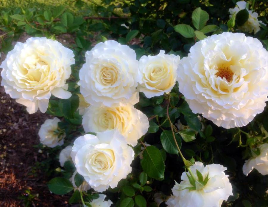 - Floribunda. Un groupe décoratif qui comprend les qualités du thé et des roses polyanthus. Les fleurs se caractérisent par des pousses de 0,4 à 1,5 m de long, des boutons doubles luxuriants, des inflorescences en forme de bouquet. Les cultivars sont résistants aux basses températures ainsi qu'à la plupart des infections.