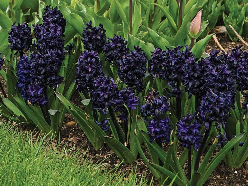 Un hybride inhabituel de couleur violet foncé, presque noir, appartenant aux variétés précoces. La longueur de l'inflorescence-bougie est de 20-25 cm, la taille des fleurs en forme de cloche est de 40 mm. Pendant la floraison, qui dure de mars à avril, la jacinthe Dark Dimension émet un arôme sucré prononcé.