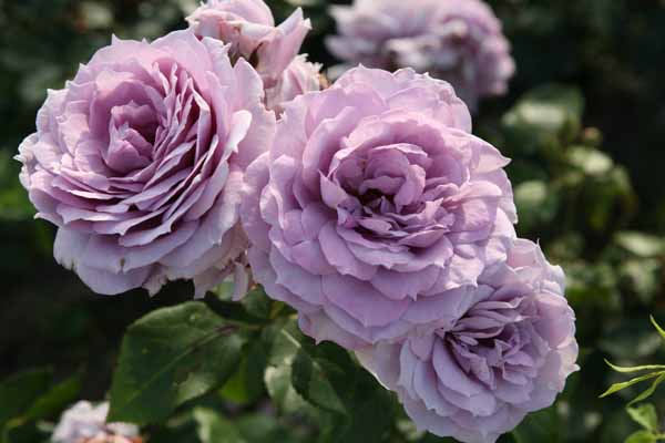 La couleur lilas met parfaitement en valeur le vert vif, le jaune clair et le citron. Dans un groupe de plantation sur un parterre de fleurs, les roses violet-lilas sont mieux combinées avec des roses. S'il existe plusieurs types de fleurs dans le jardin de fleurs, des fleurs violettes peuvent être plantées au centre de la composition et complétées par des fleurs sous-dimensionnées de tons clairs. Dans le bouquet, les roses violettes sont mises en valeur avec succès par de petites fleurs blanches et des verts émeraude brillants.