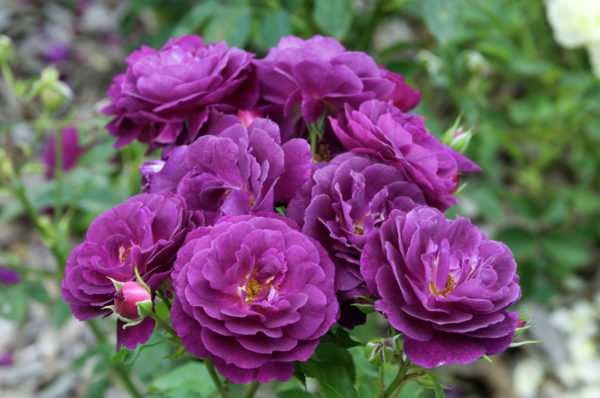 - Éden pourpre (2001). Floribunda de sélection américaine avec une couleur pourpre incroyablement profonde des fleurs. Au stade du bouton, la rose est violet foncé avec une légère couche de fumée, au fur et à mesure de sa floraison, elle acquiert une couleur prune foncé. Les fleurs sont grandes, densément doubles, veloutées. Le buisson atteint sa floraison en 4-5 ans.