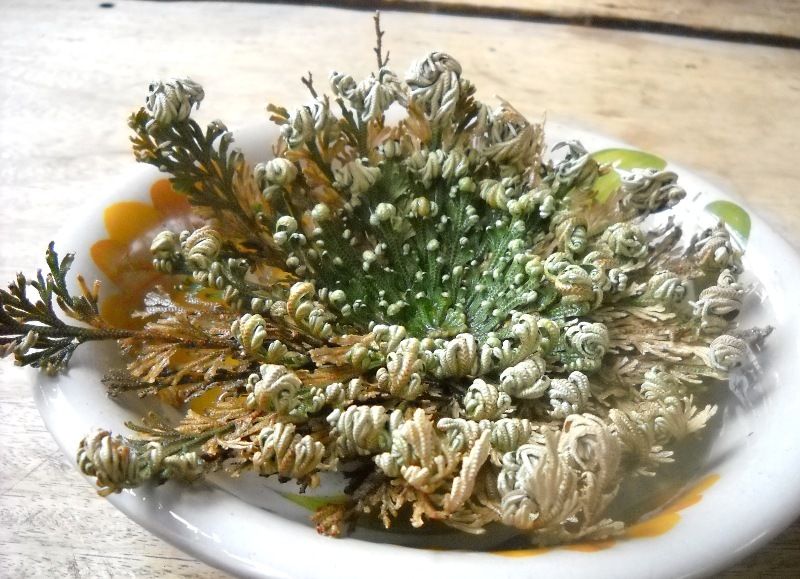 « Beaucoup se plaignent que la rose de Jéricho ne fleurit pas avec eux ou qu'elle se comporte d'une manière étrange. Ma fleur a trois ans et nous sommes passés de l'état vivant à l'état séché plusieurs fois. La règle principale est de changer l'eau quotidiennement et de vaporiser régulièrement la plante par-dessus. "