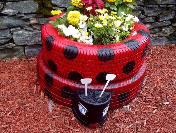 Comment peindre un parterre de fleurs fait de pneus ou d'autres matériaux