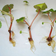 Un rameau de 7-8 cm de long est coupé d'une plante adulte. Les feuilles inférieures sont enlevées, ne laissant que 2 à 3 feuilles supérieures, qui sont légèrement coupées. Saupoudrer les sites coupés avec un antiseptique et insérer la pousse dans le sol. Couvrir le semis sur le dessus avec une bouteille ou un bocal en plastique. Le bégonia commencera à fleurir dans les 2 mois suivant la plantation.