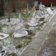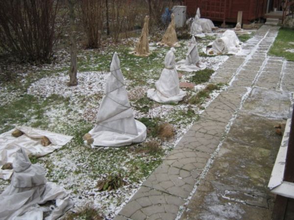 Pour un hivernage au chaud de ces espèces, des branches d'épinette, de la tourbe, de la sciure de bois ou du feuillage sec suffiront. Le matériau est réparti autour de la tige, protégeant la zone racinaire du gel. Le moment de la mise à l'abri est également important. Il n'y a pas de période précise, il faut se laisser guider par la météo : lorsque les basses températures sont enfin installées, vous pouvez préparer un abri.