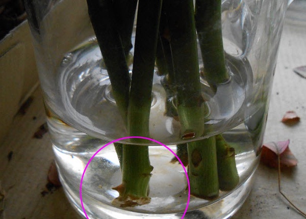 L'appartement de ville est équipé d'eau courante, pas d'une source, donc l'eau doit être défendue et filtrée, ou au moins filtrée. Avec ce soin, vous pourrez admirer le bouquet pendant plusieurs jours, puis préparer les boutures, mais il ne faut pas trop retarder ce processus.