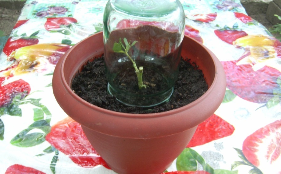 Le sol préparé est humidifié, la tige est placée avec une coupe oblique à la frontière de sable et de terre, arrosée, le sol est pressé contre elle, bien fermé sur le dessus avec un capuchon transparent qui crée un effet de serre, il peut s'agir d'un verre pot ou juste un sac. Ici, les opinions des experts diffèrent sur la façon de planter la bouture - obliquement ou directement. L'expérience nous dit qu'il y aura un résultat positif (ainsi que négatif) dans tous les cas.