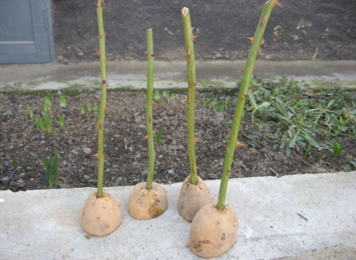 - coller les boutures préparées dans les tubercules de pomme de terre, comme décrit ci-dessus;