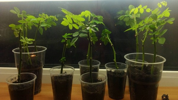 Pour que les boutures prennent racine plus tôt, le sol doit toujours être humide. Par conséquent, à la maison, en plus de l'arrosage, il est recommandé de vaporiser de l'eau sur les futures roses. Un bocal en verre ou un abri pour bouteille en plastique peut aider à maintenir la chaleur et l'humidité. Une fois que les bourgeons ont commencé à se développer sur les boutures, l'abri est retiré et les plantules sont progressivement adaptées aux conditions environnementales. Une attention particulière doit être portée à la qualité de l'éclairage, mais il faut veiller à ce que les germes ne surchauffent pas.