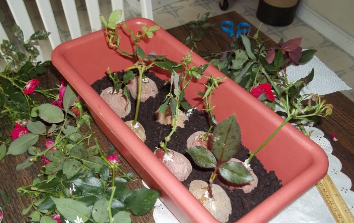 L'avantage de cultiver des roses dans des pommes de terre à la maison est que vous pouvez le faire à tout moment de l'année. La pièce est toujours chaude et si vous parvenez à faire germer des boutures en hiver, vous pourrez obtenir à la fin du printemps un buisson à part entière à transplanter sur un parterre de fleurs ou attendre la floraison sur le rebord de la fenêtre. Tous les conteneurs sont utilisés pour faire pousser des roses à la maison, mais, bien sûr, en tenant compte du sort ultérieur de la fleur: si elle décore votre maison, vous devez choisir un beau pot et si vous envisagez de la transplanter en pleine terre, alors même des bouteilles en plastique coupées feront l'affaire.