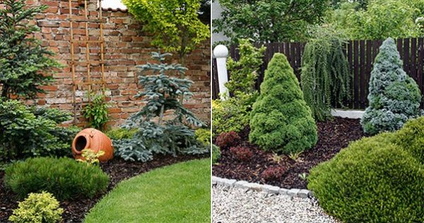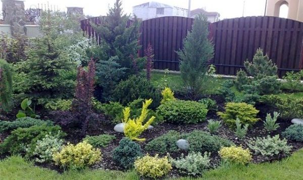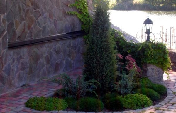 - au stade de la planification, vous devez décider des matériaux de finition utilisés pour l'encadrement et la décoration des parterres de fleurs - les conifères ont l'air plus efficaces dans un cadre en pierre;