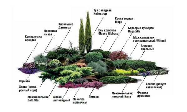 - dans le plan, tous les conifères, pierres, éléments décoratifs supplémentaires doivent être affichés aussi précisément que possible et la séquence de leur plantation est indiquée par des numéros.