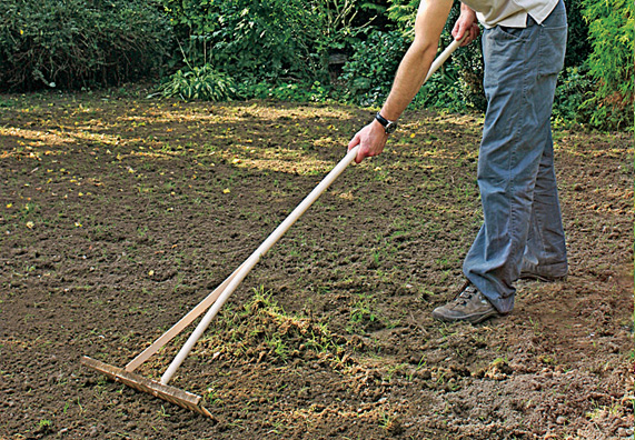 - ils laissent tomber le matériau à une profondeur de 5 cm, marchant avec un râteau en éventail et essayant de ne pas piétiner le sol;