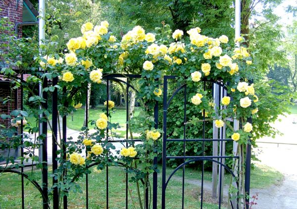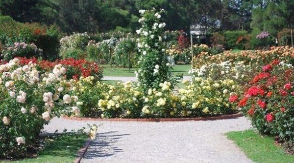 Entre les roses naines miniatures, il reste 40 à 50 cm.Entre les roses de thé hybrides basses, il devrait y avoir un écart allant jusqu'à 100 cm, entre les roses grimpantes standard et à croissance lente - 115 cm, et les roses de parc hautes, pleureuses standard et tissage à croissance rapide les roses sont plantées après 1,5 mètre. Ce n'est qu'après avoir planté toutes les roses que vous pouvez commencer à planter des voisins - d'autres plantes de jardin de fleurs.