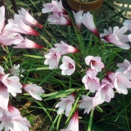 La principale caractéristique du gabrantus est que les bourgeons ne s'ouvrent qu'après un arrosage abondant ou une pluie. Ils sont de couleur blanche, jaune orangé ou rose lilas. Pour que la plante fleurisse à temps, elle doit être plantée au plus tard en avril.Pour l'hiver, les bulbes doivent être déterrés, car la fleur n'est pas résistante à l'hiver.